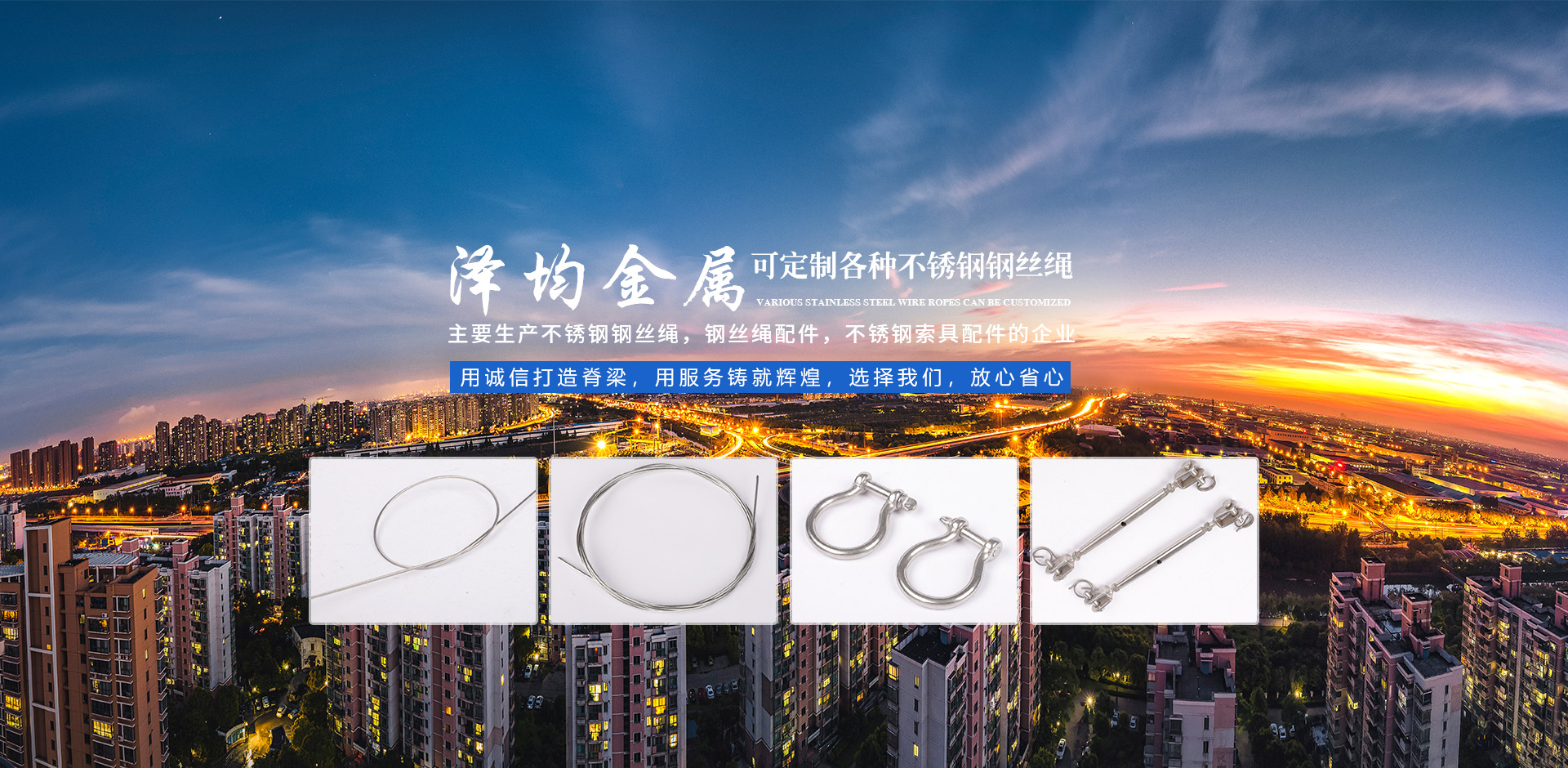 泰州市澤均金屬制品有限公司是一家生產(chǎn)不銹鋼鋼絲繩,鋼絲繩配件,不銹鋼索具配件的企業(yè)。 本廠主要生產(chǎn)各種型號鋼絲繩不銹鋼絲繩、涂塑不銹鋼絲繩、漁具鋼絲線、包膠不銹鋼絲繩、高強(qiáng)度不銹鋼絲繩、不銹鋼拉索、不銹鋼索具等。產(chǎn)品以304、304L、316、316L等不銹耐酸鋼為原料,生產(chǎn)鋼絲繩結(jié)構(gòu)有單股繩(即1*7、1*12、1*19、1*37)、多股繩(即3*3、3*7、6*7、7*7、6*19、......